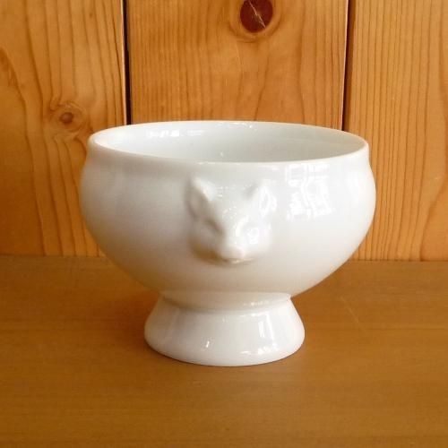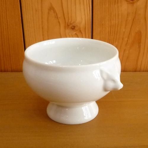 このタイプの器はライオンの顔や丸い持ち手がついているのが普通ですが、こちらはかわいいブタの顔がついています。