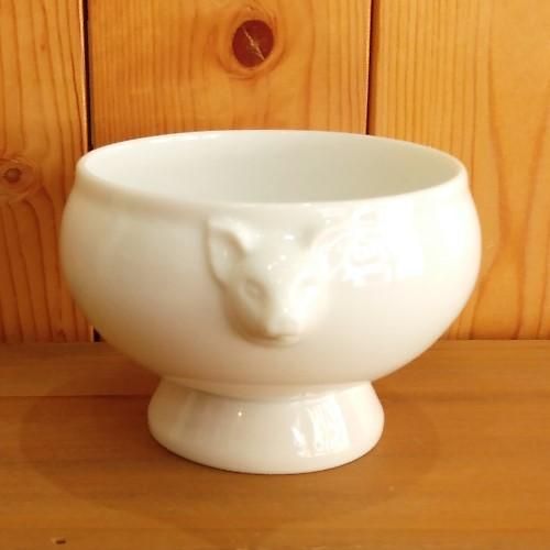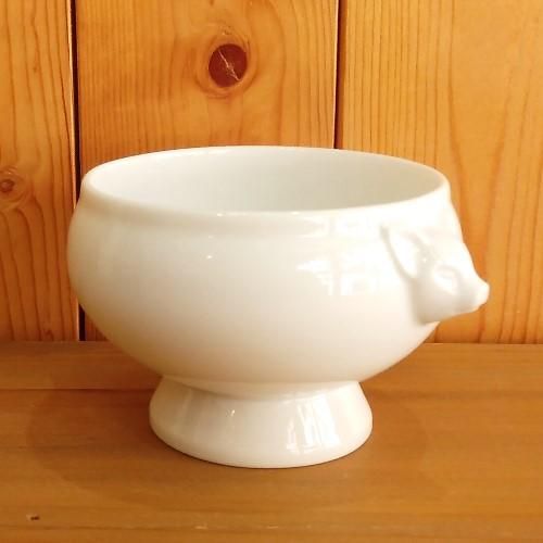 このタイプの器はライオンの顔や丸い持ち手がついているのが普通ですが、こちらはかわいいブタの顔がついています。