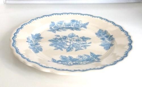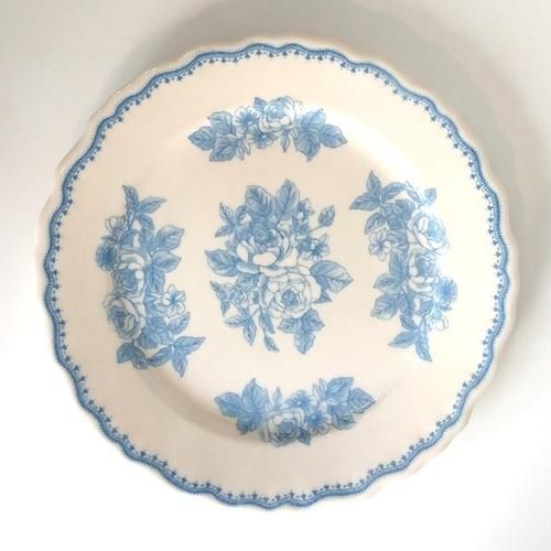 薄いアイボリー地に水色の薔薇の絵柄が美しいケーキプレートです。