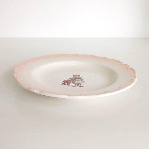 プレートの中央にはテディベアを抱えた女の子、裏面にはボールがデザインされています。
