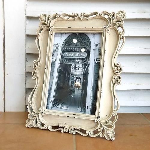 アンティークな雰囲気に仕上げられた、アイボリーカラーのフォトフレームです。