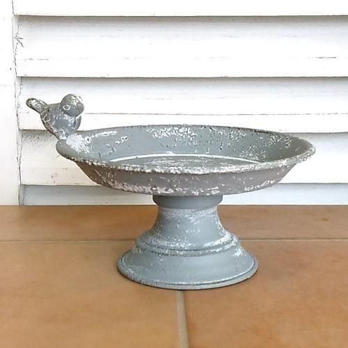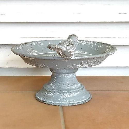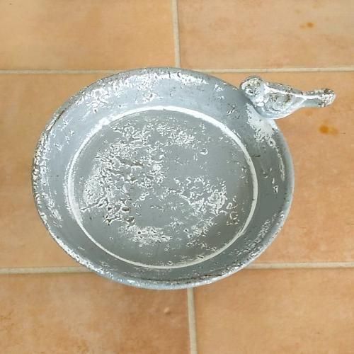 鳥のオブジェがアクセントになっている、足付きの浅めの小物入れです。