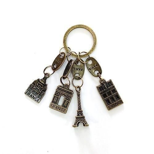 パリの有名な4つの建築物(エッフェル塔、凱旋門,ノートルダム大聖堂、サクレクール寺院)が付いたキーホルダーです。